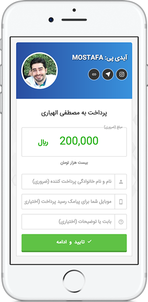 نمونه آدرس آیدی پی: IDPay.ir/mostafa